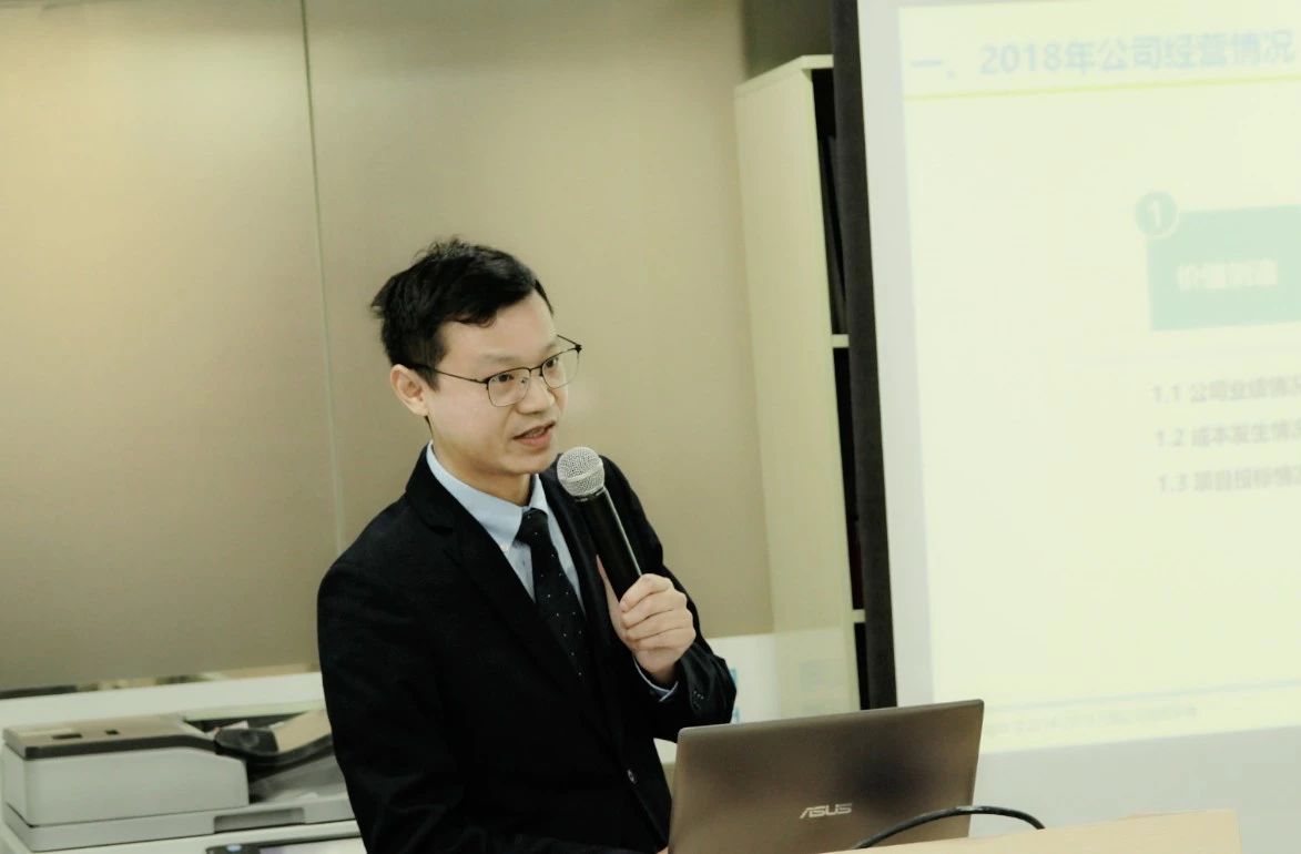 ? ? 公司副總經(jīng)理鄭源分別從“價值創(chuàng)造”、“業(yè)務(wù)運作”、“員工發(fā)展”三個方面對公司2018年年度經(jīng)營及管理情況進行了總結(jié),并運用數(shù)據(jù)全面分析了公司項目管理、員工培訓(xùn)、知識管理等各方面工作完成情況。