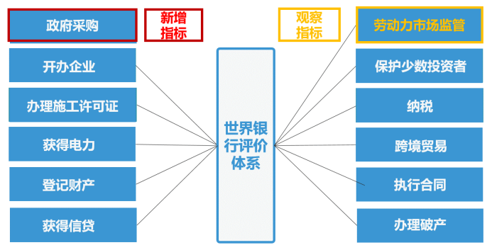 世界銀行營商環(huán)境評價一共有12項指標,覆蓋企業(yè)全生命周期啟動、選址、融資、運營、容錯處理五個階段,是一項涉及經(jīng)濟社會改革和對外開放眾多領(lǐng)域的系統(tǒng)工程,體現(xiàn)了一個完成的企業(yè)旅程。