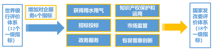 國家評價指標體系在世界銀行評價指標體系的基礎(chǔ)上,結(jié)合我國實際情況,考察衡量企業(yè)全生命周期、反映城市投資吸引力、體現(xiàn)城市高質(zhì)量發(fā)展水平三方面情況,增加了對企政務(wù)服務(wù)的6個指標,構(gòu)建中國特色、國際可比的指標體系。