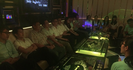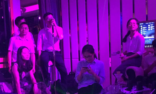 ? ? ? 吃飯與唱歌似乎從來(lái)就是集體活動(dòng)的標(biāo)配,但這并不妨礙我們把標(biāo)配變成絕配。在主持人的精心策劃下,采用抽簽的方式,保證每位同事都獲得至少一次的演唱機(jī)會(huì)。五音不全也好,字正腔圓也好,唱的是氣氛,是開(kāi)心。氣氛瞬間從拘謹(jǐn)切換到熱烈,曲調(diào)也從柔和溫婉轉(zhuǎn)變?yōu)闊崆楦呖?,歌聲成了最好的交流語(yǔ)言。中文、粵語(yǔ)、閩南語(yǔ)、英語(yǔ)匯聚在一起,歡樂(lè)匯聚在一起,大家匯聚在一起……
