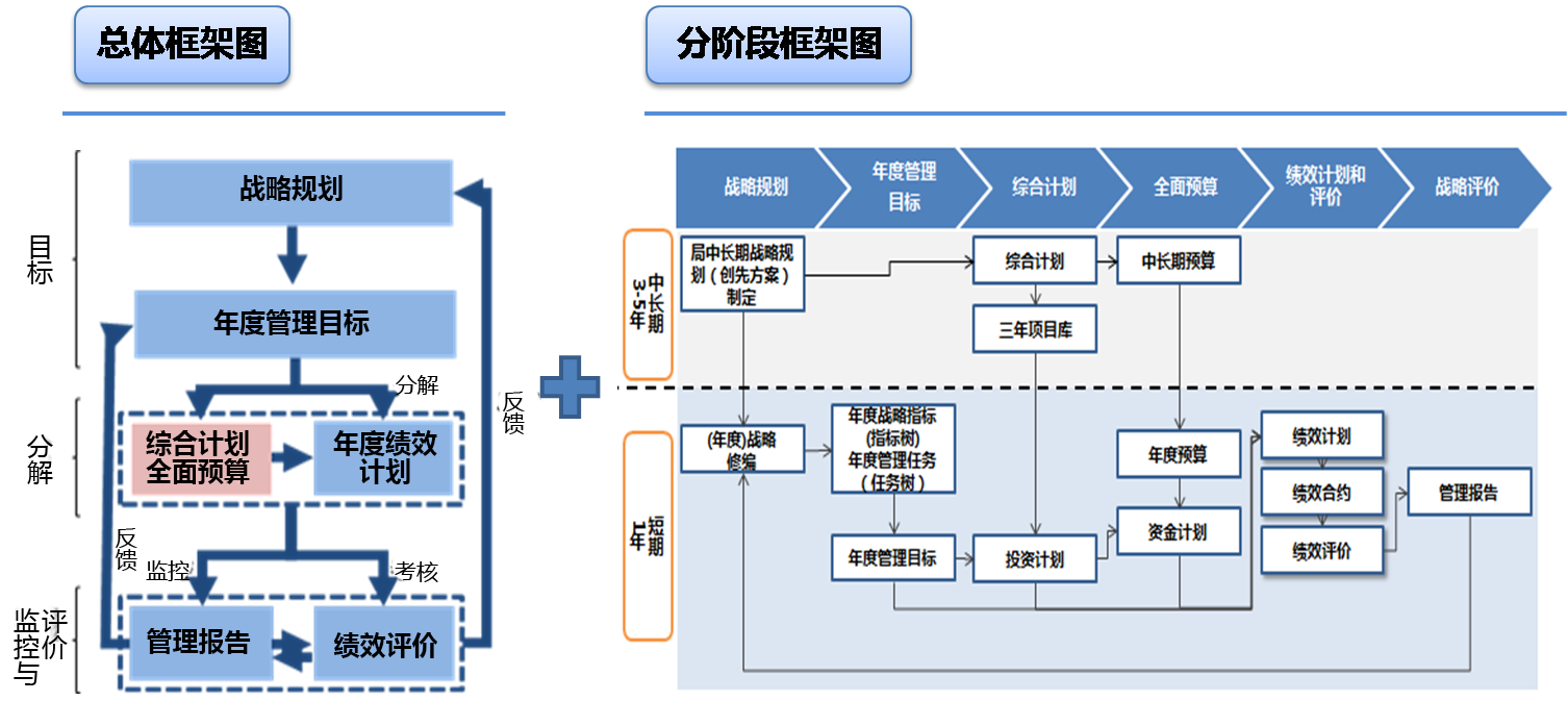 ? ? ? 綜合計劃體系:將戰(zhàn)略目標進行分解,形成逐年指標目標值,并有效結合預算。